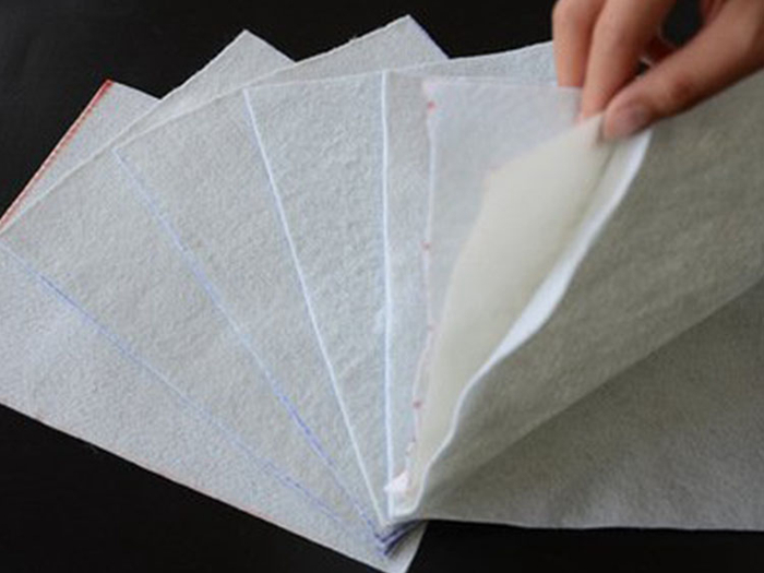 復合土工膜是在薄膜的一側或兩側經過烘箱遠紅外加熱,把土工布和土工膜經導輥壓到一起形成復合土工膜。隨著生產工藝的提高,還有一種流延法做復合土工膜的工藝。其形式有一布一膜、二布一膜、兩膜一布等。